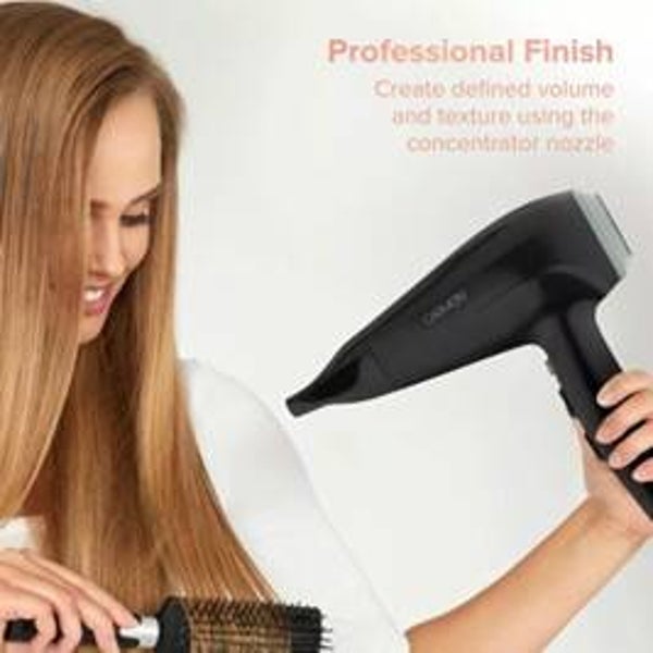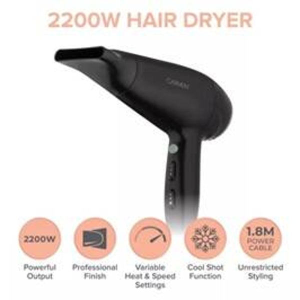 Achieve salon-style blow-dry results at home with this Carmen Hair Dryer with its 2200w motor it will provide fast, frizz-free styling. It has a choice of 3 heat/2 speed settings to tailor the drying intensity to suit your hair type. With an 1.8m power cable it will let you style without restriction, while the removable filter makes the dryer easy to clean and maintain its top performance.