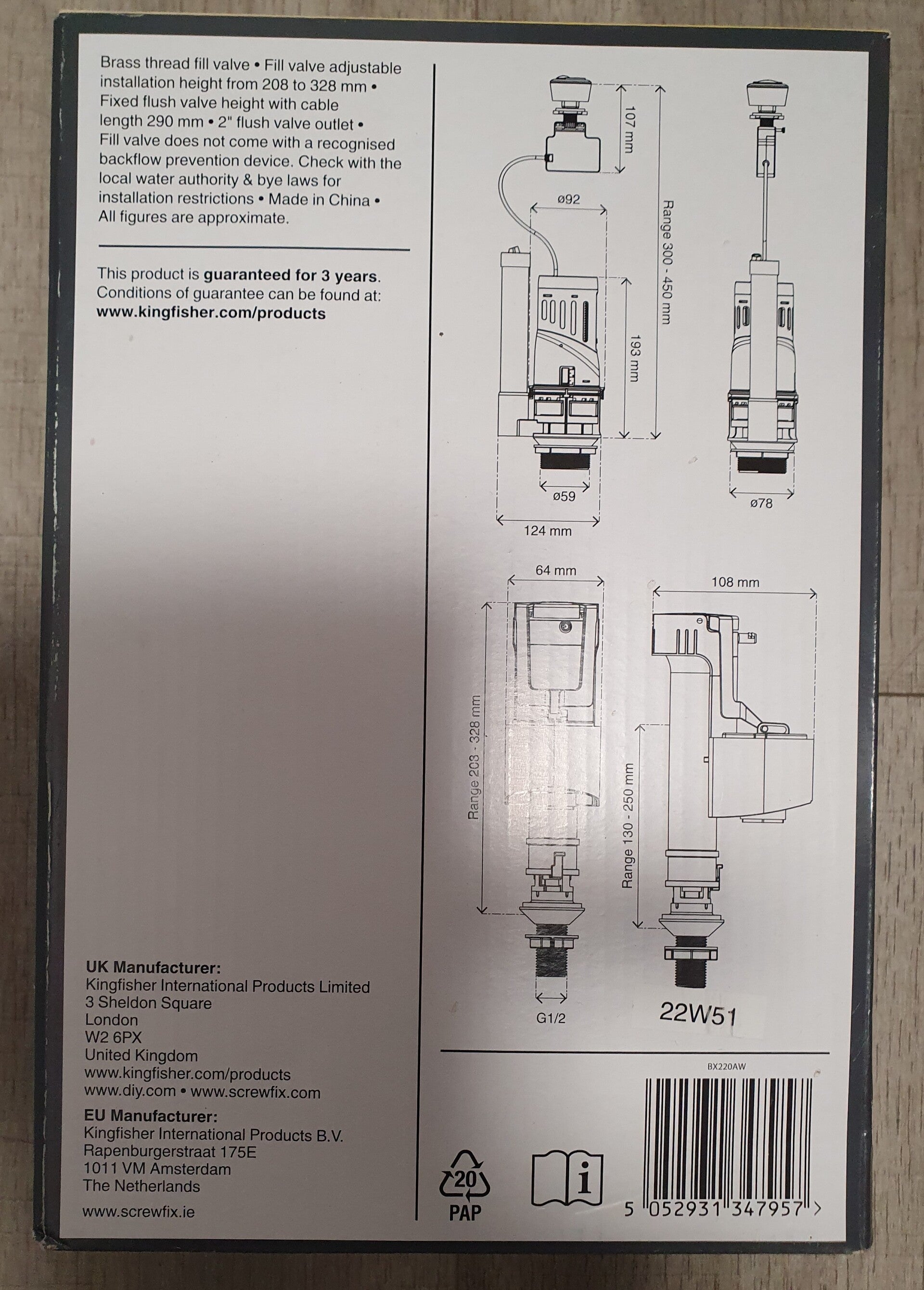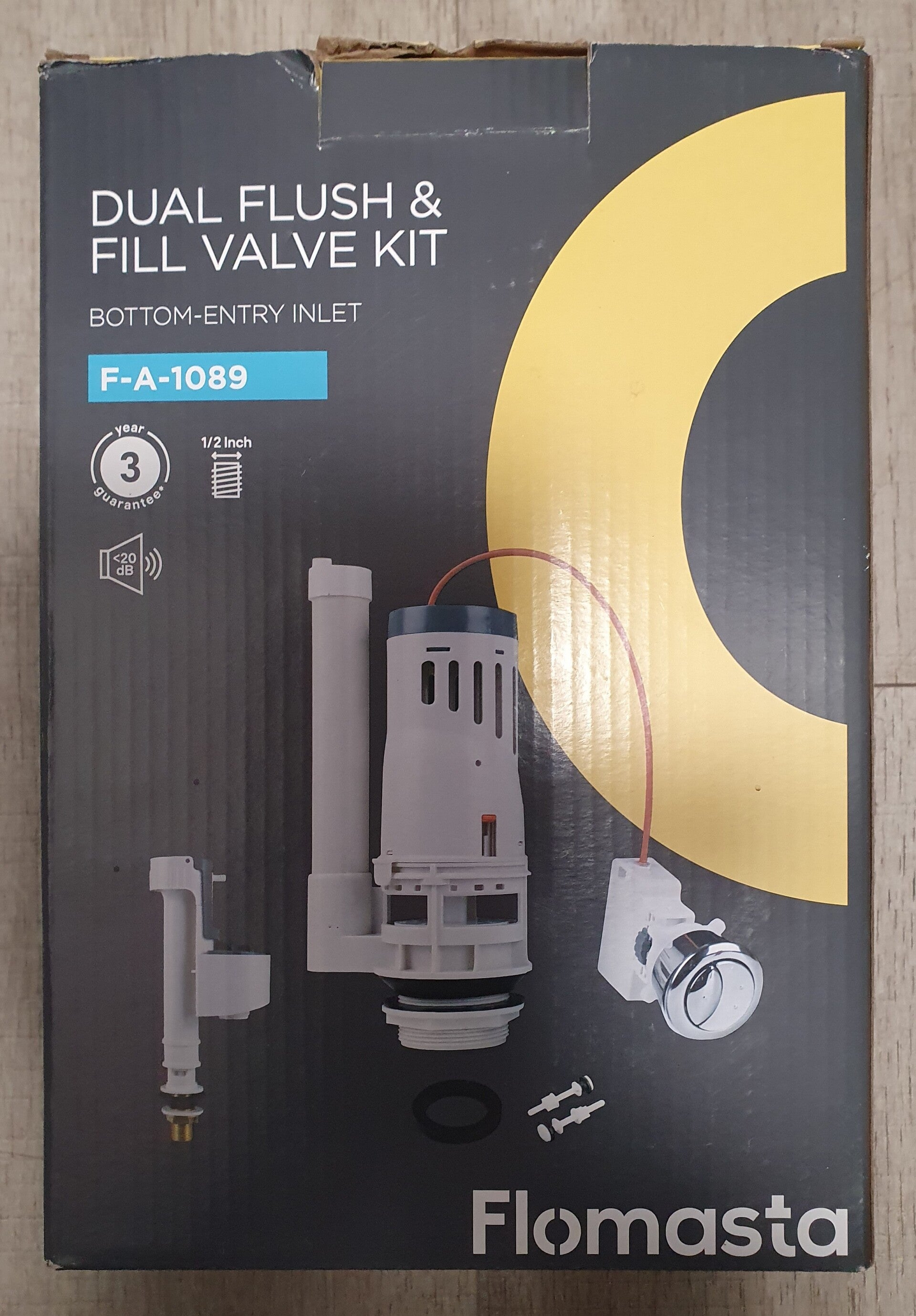 This Flomasta F-A-1089 dual flush & fill valve kit (bottoom entry inlet) is designed for efficient and reliable use in plumbing systems and has a fill valve for regulating water levels. This valve kit is ideal for maintaining and upgrading your plumbing system, ensuring smooth operation and water efficiency.