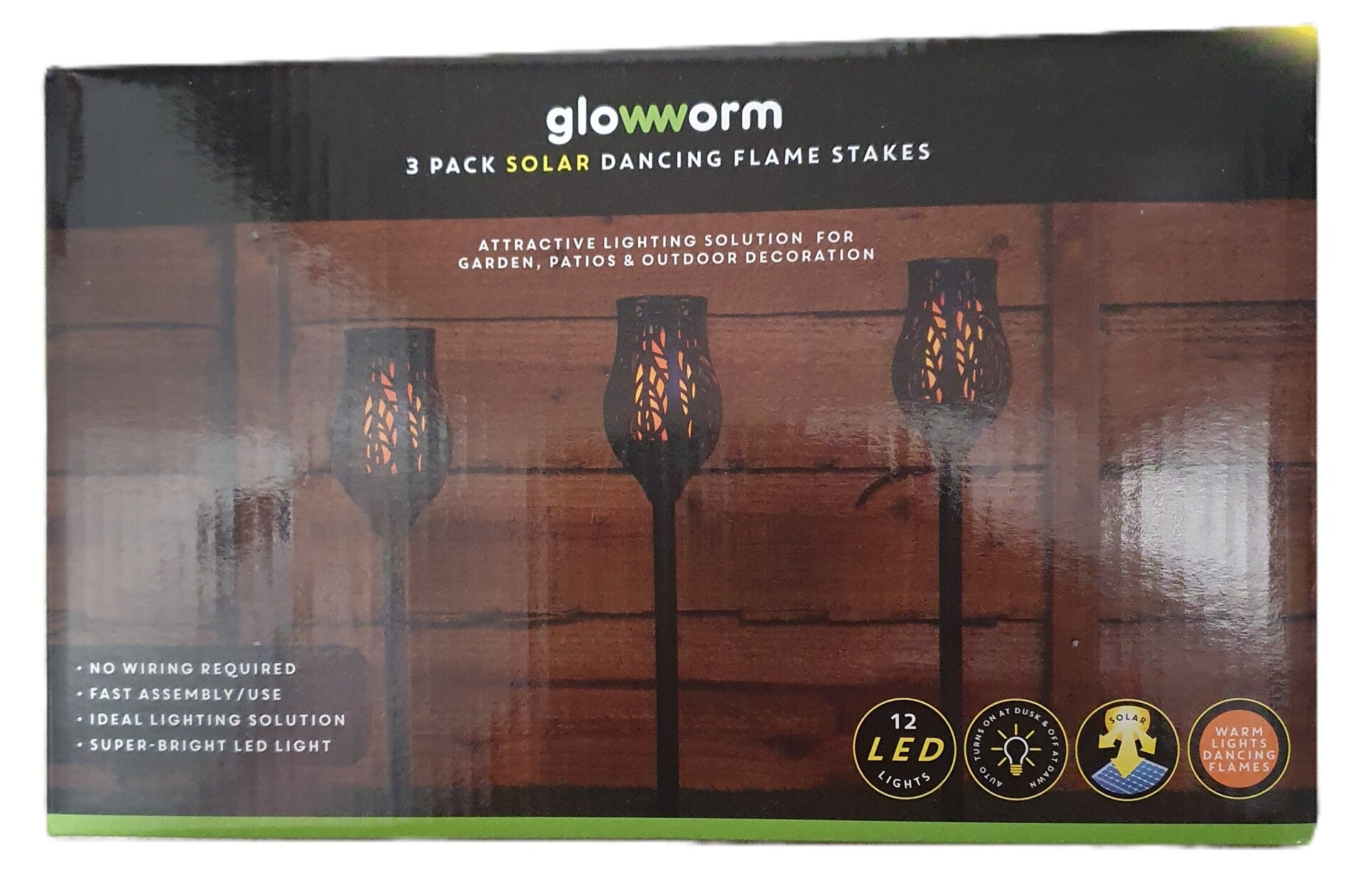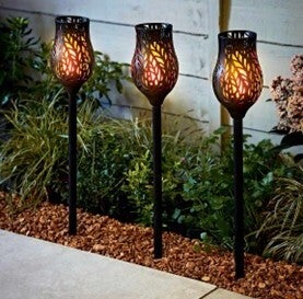 Why not add an attractive lighting solution to your garden, patio or outdoor area. No wiring required, super-bright LED lighting providing a warm dancing flames effect.